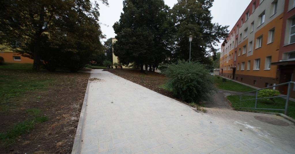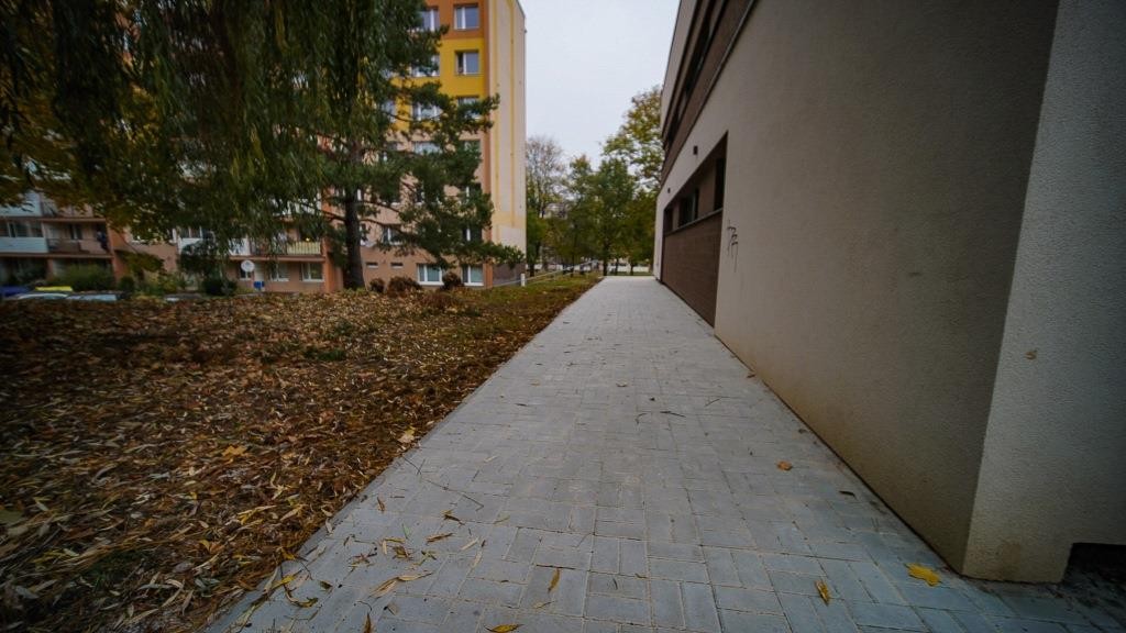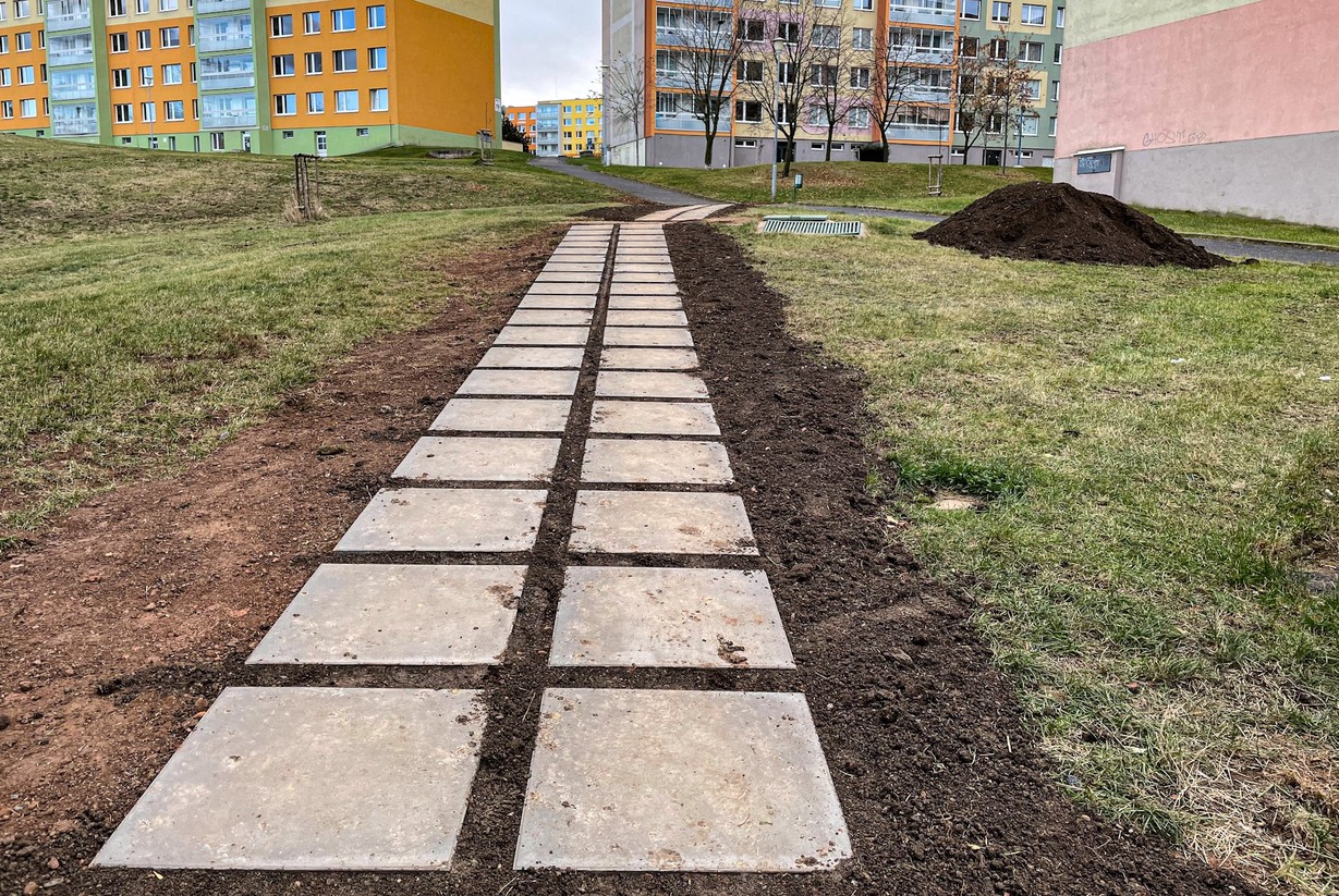Položili jsme novou velkoformátovou dlažbu v lokalitách, kde jsou vyšlapané cestičky a zkratky. Velkoformátová dlažba, kterou vidíte na fotografii, je v ulici Komořanská. Jsme tu pro Vás, Technické služby města Mostu.