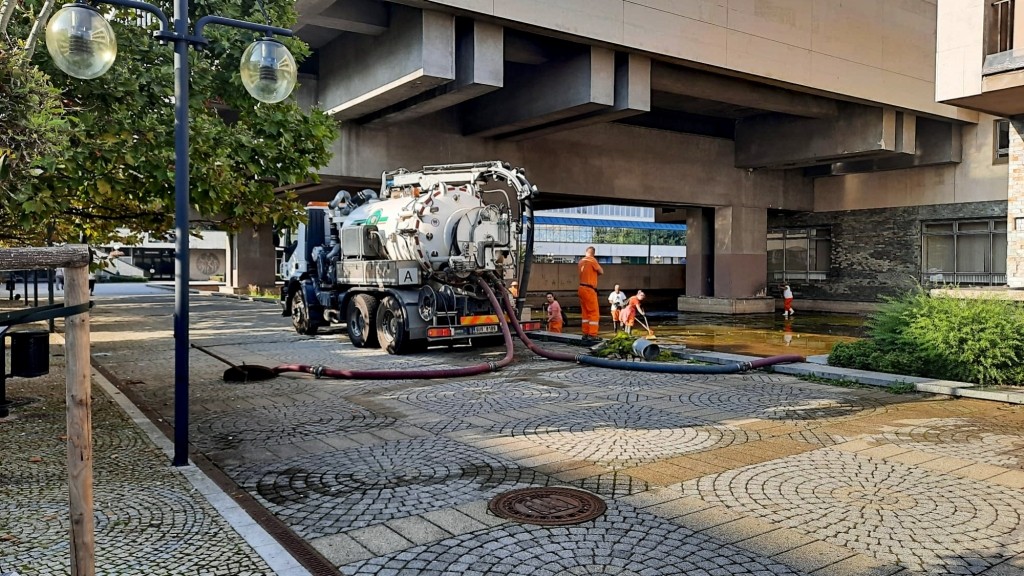 Pracujeme na desinfekci a vyčištění kontejnerů v našem městě. Nejprve je zapotřebí kontejner vysypat a zbavit ho všech pevných zbytků odpadu. Poté se kontejner umyje vysokotlakem, který obsahuje mycí prostředek. Ten neškodí životnímu prostředí a může se s ním manipulovat přímo „na ulici“. Po omytí putuje kontejner do speciálního vozidla, kde je vydesinfikován a následně pak znovu omyt. Jsme tu pro vás, Technické služby města Mostu.