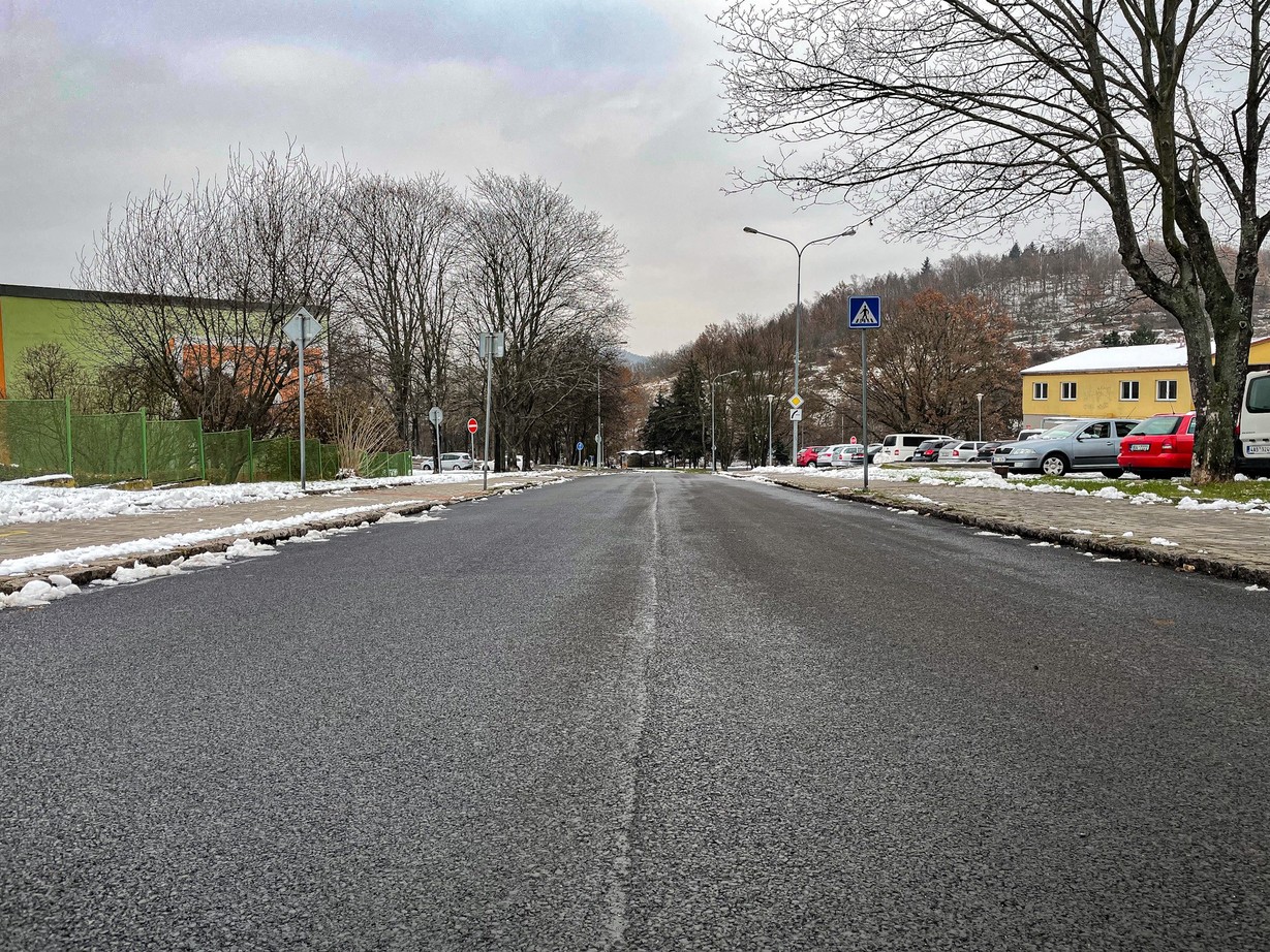 Nový asfaltový povrch je položený a vodorovné dopravní značení je nakreslené. V dolní části ulice pracujeme ještě na parkovacích stání a budeme mít hotovo! Jsme tu pro Vás, Technické služby města Mostu.